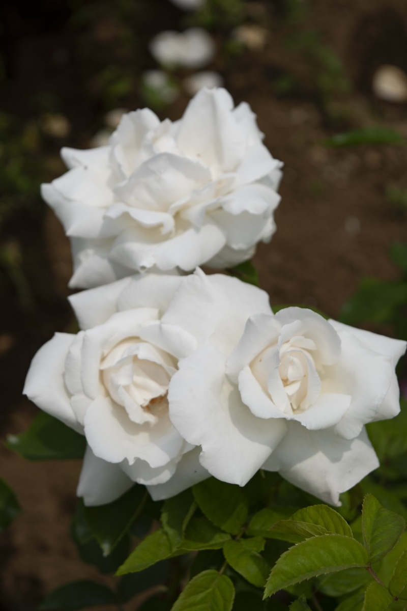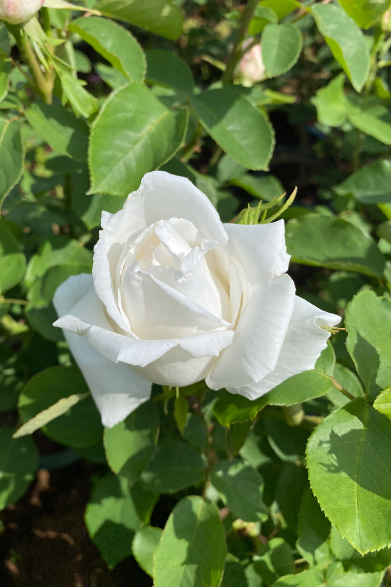 別名スノークイーン、ホワイトアメリカンビューティー。日本でも古くから不二の名で親しまれた名花です。蕾には赤味がさしますが、開くと純白になります。短く切ってもよく花を付け、耐病性の高い強健種です。花名は、ドイツバラ協会のカール・ドルシュキ夫人に捧げられた事にちなんでいます。壁面など広いところで仕立てやすい品種です。子孫にスパニッシュビューティーがあります。