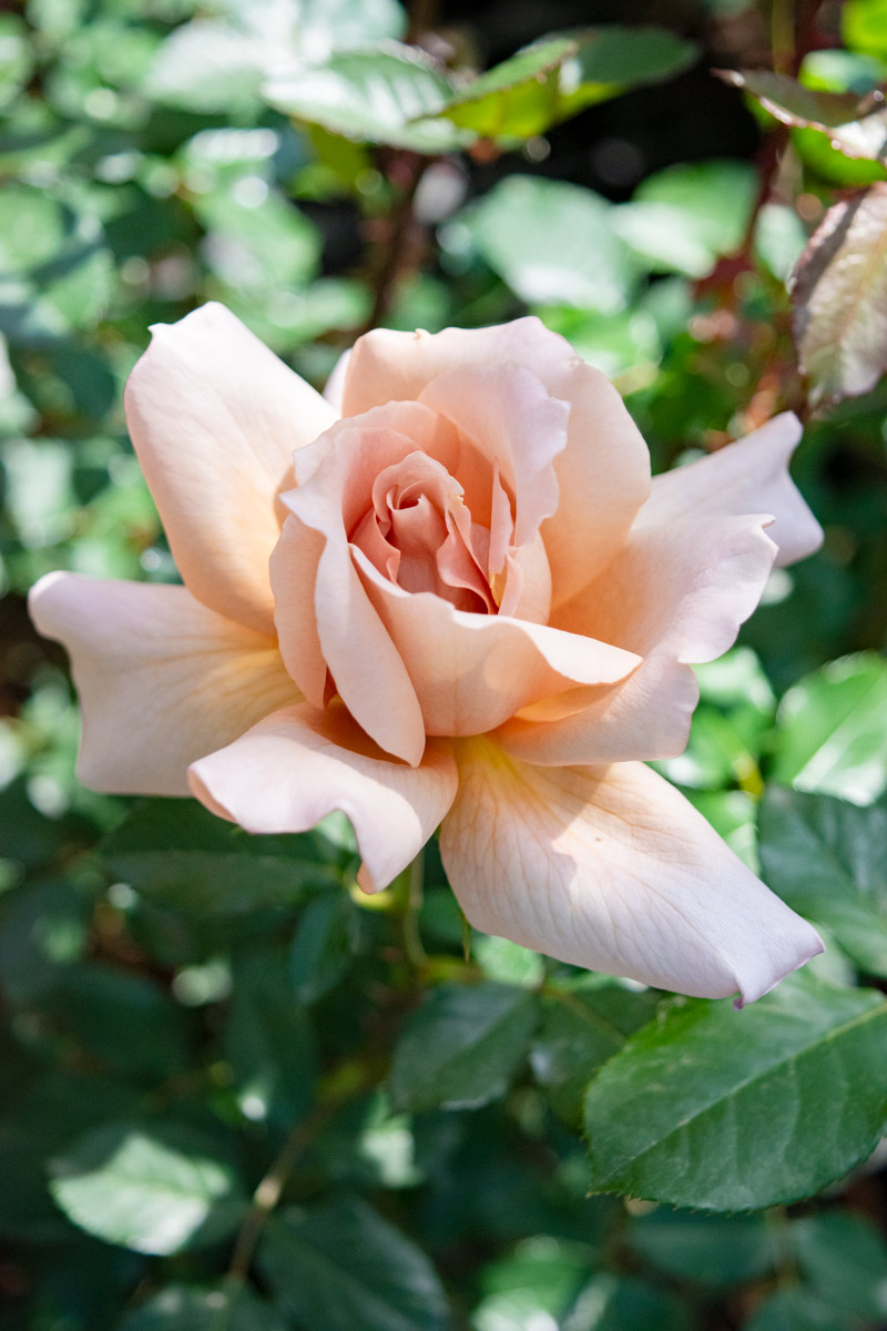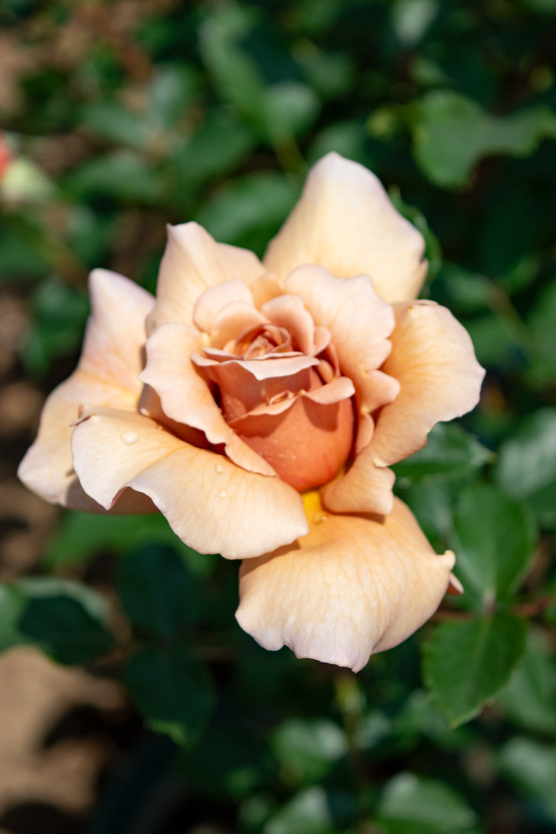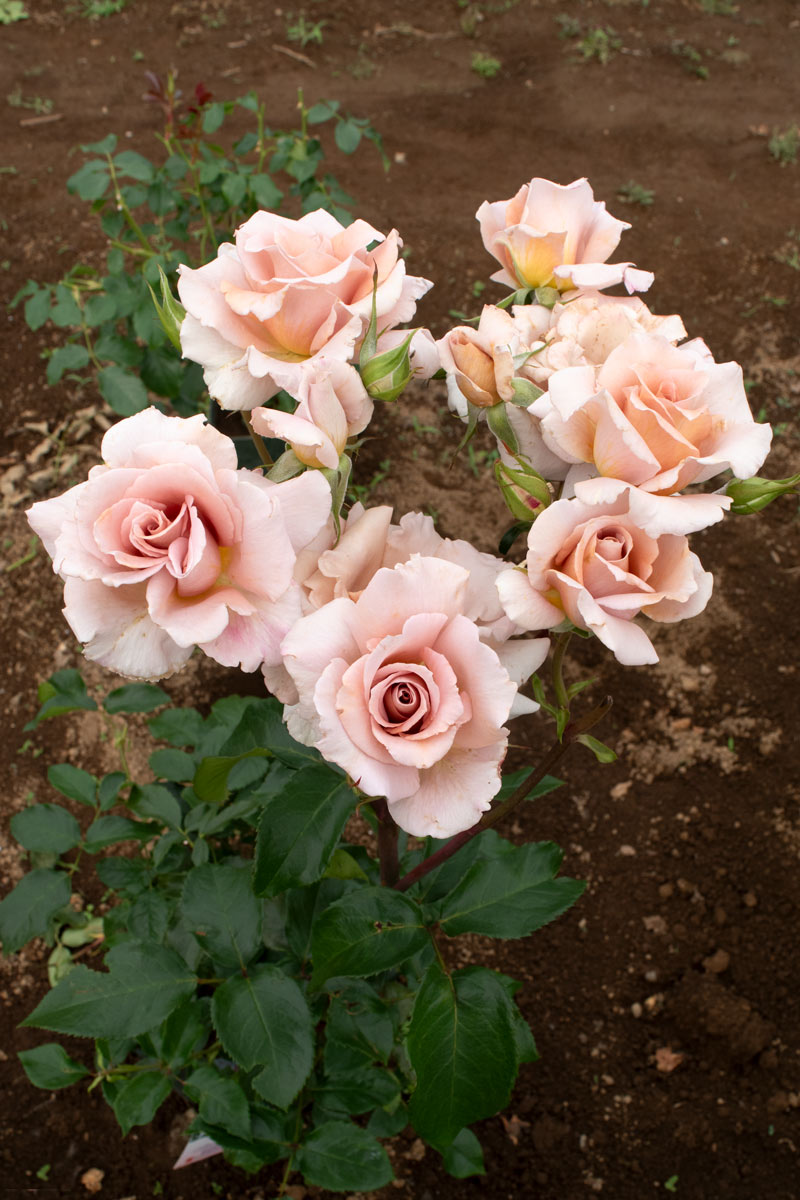 ティーローズ香。切り花として人気の高い品種です。ゆるやかに波打つ花弁が魅力的で、花もちも良いです。比較的早く咲き、花の中心が濃い茶色で、外側に行くにつれ薄いピンクが入る完成された八重咲きです。シュートの発生は良いですが、枝の寿命が短めです。
