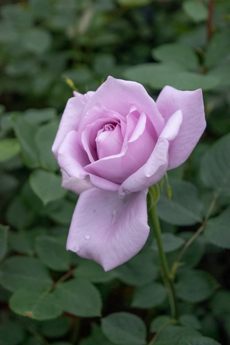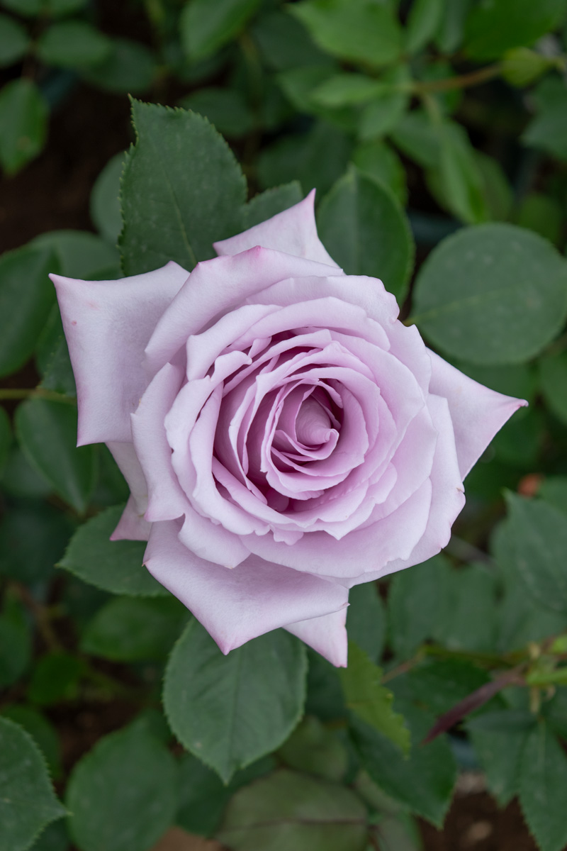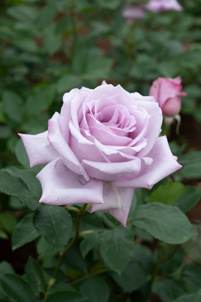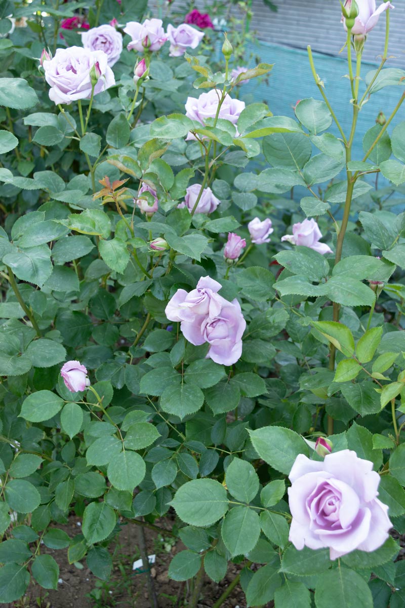 ダマスクとティーが合わさった強い芳香を放ちます。藤色のバラの名花の一つ。花弁が薄いので雨での傷みやすさはありますが、 トゲが少なめでよく伸びます。ローマ金賞を受賞していて、大変に存在感のある一度は育ててみたいバラです。 花の大きさは12㎝くらいで、スターリングシルバーとの交配によって作られております。