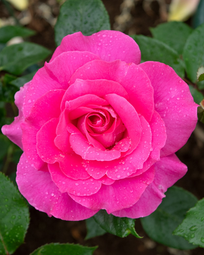花は、輝くほど鮮やかな濃ローズピンク色、花弁数は40枚前後で房咲き性、多花性で花持ちが良く、切り花としても楽しめる品種です。耐病性もあります。1977年ハーグ国際コンクール金賞、他多数獲得。花名は作出者マリールイーズ・メイアンの愛称です