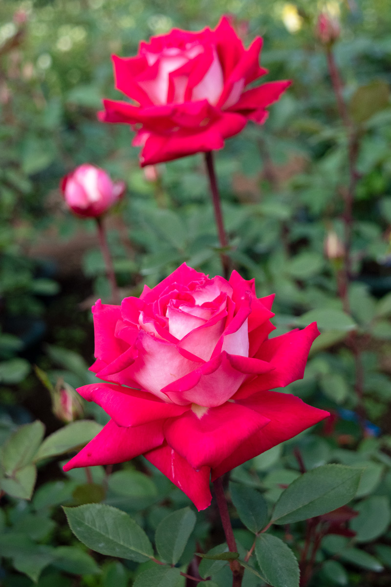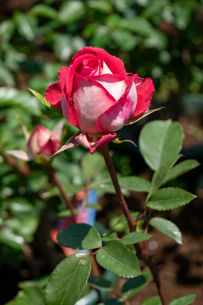 アメリカの有名な作出家ウォリナーが生み出しました。花弁は表が赤で裏が白の鮮やかなコントラストの覆色花です。花は小ぶりですが大変花付き良く、細目の枝が多数立ち上がり、コンパクトにまとまります。1992年AARS(オールアメリカローズセレクション)受賞。