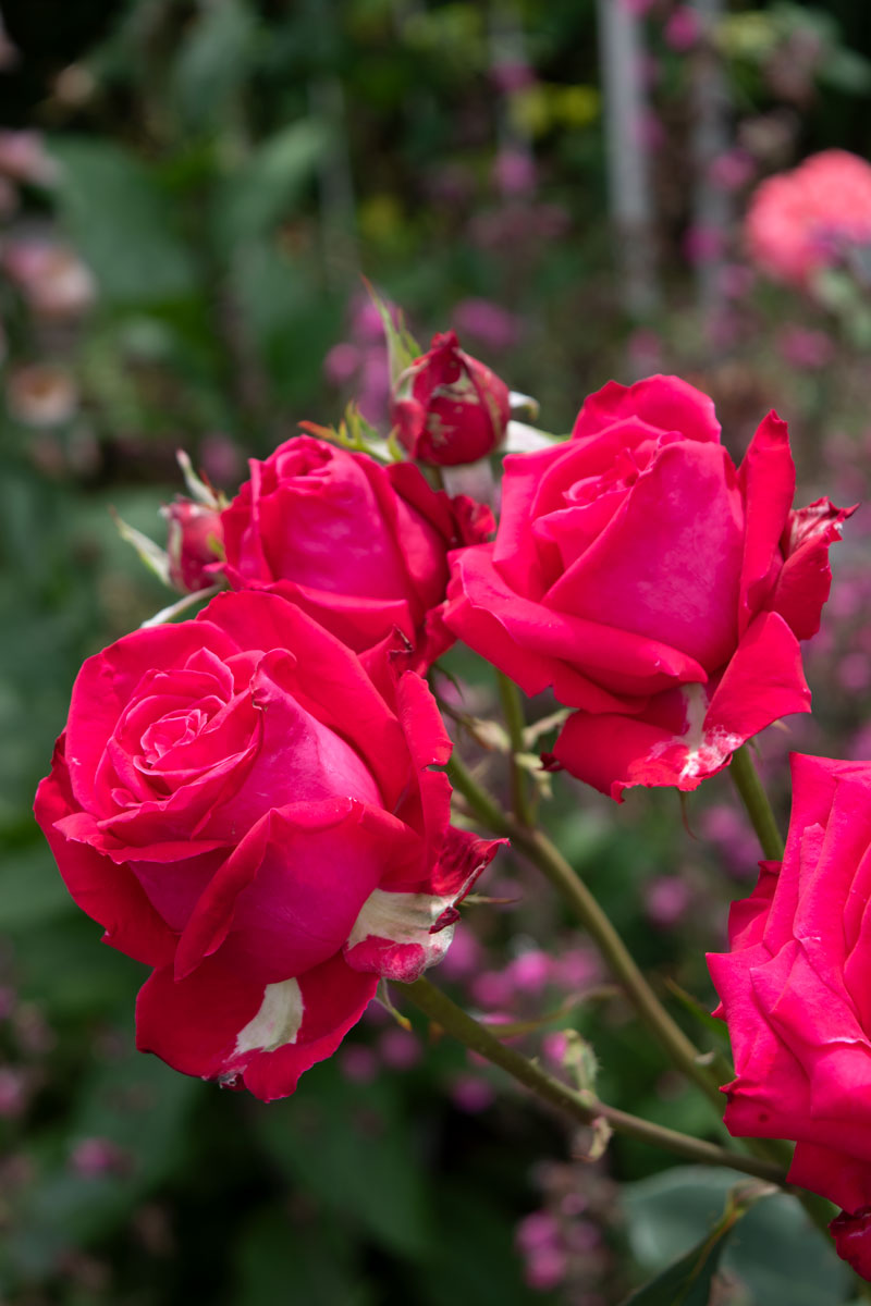鮮やかでありながら落ち着きのある深いローズレッドの、気品あるバラです。