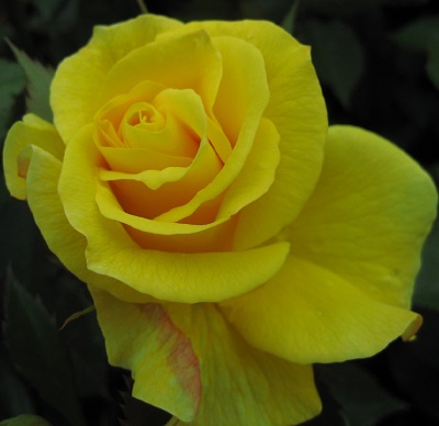 花色は鮮やかな濃黄色です。花弁数は15-20枚で、濃緑色の葉は小型で光沢もありますので、花との対比を楽しめます。強健種。