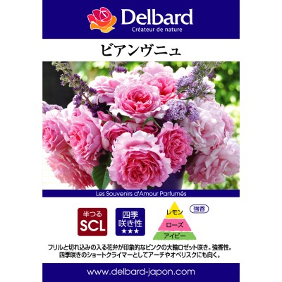 四季咲きのショートクライマーとしてアーチやオベリスクにも向く。