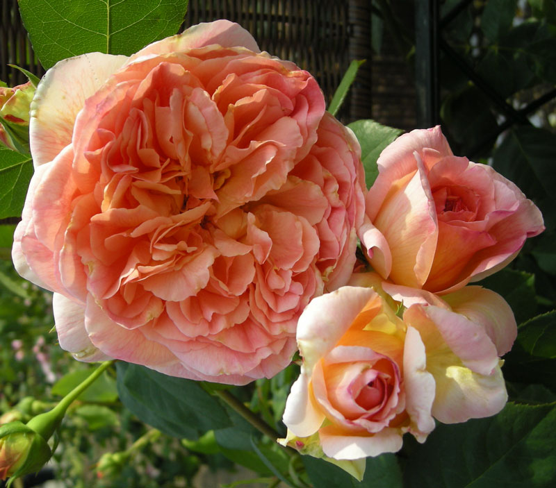 オレンジ、アプリコット、黄色の混じりあった暖かい花色。カップ咲きからロゼット咲きに変化する花は、花弁が多いオールドローズタイプの大輪に。新鮮なフルーツの香りも魅力です。細めの枝が2~3mになるので、壁面やアーチ仕立てが楽しめます。パピはフランス語で「おじいちゃん」の意味で、デルバール社の創始者ジョルジュ・デルバールが晩年自分で選んだバラ。