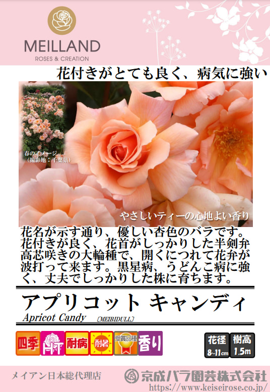 花壇植えに適していて、うどんこ病や黒星病に強く、丈夫でしっかりした株に育ちます。