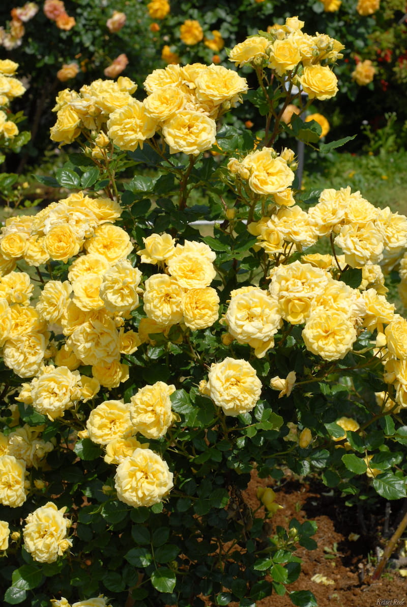 黄色の花色が、淡緑色の葉と合わさって、とても素敵な可愛らしいバラです。