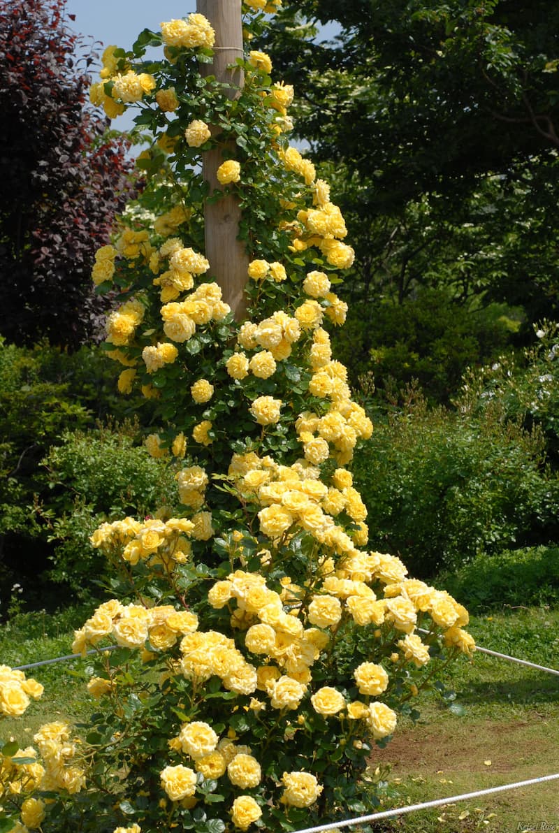 丈夫で育てやすく、樹勢が良いので、シュラブ状に伸びた枝をつるバラとして仕立てることもできます。