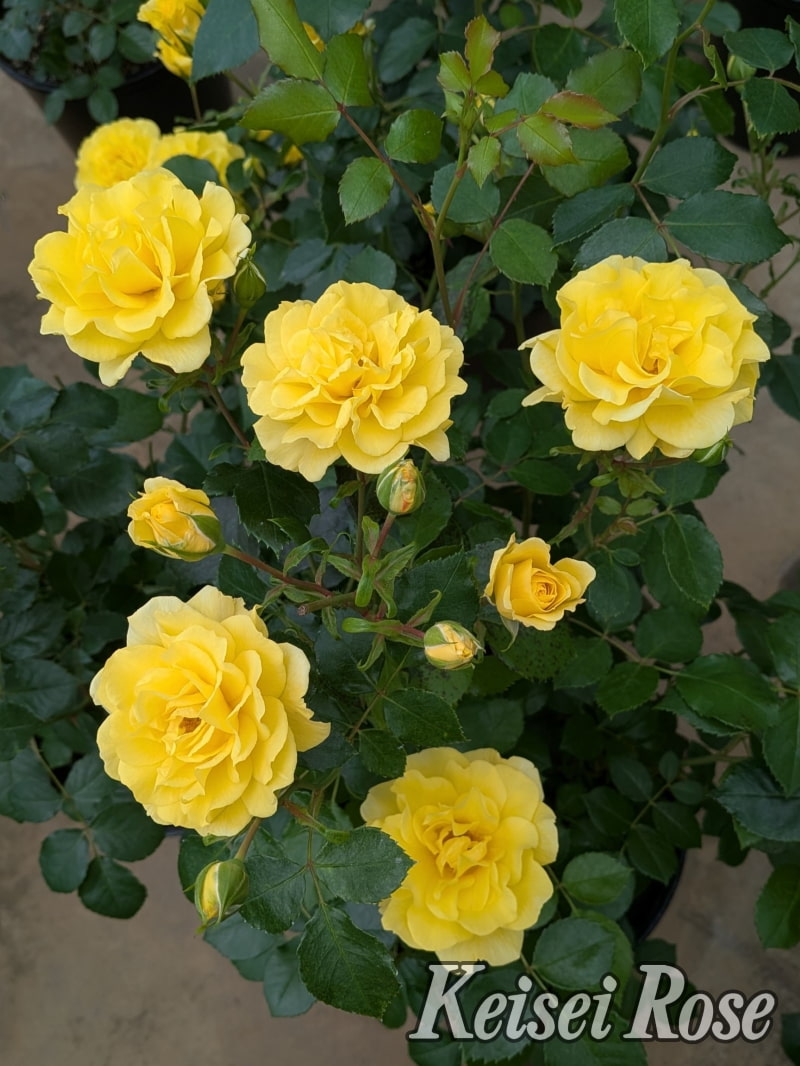 鮮やかな黄色が目に飛び込んでくる、コンパクトで育てやすい品種です。非常に優れた耐病性と、圧巻の花付きでローメンテナンスを実現した、植栽から初心者まで楽しめる素晴らしい品種です。