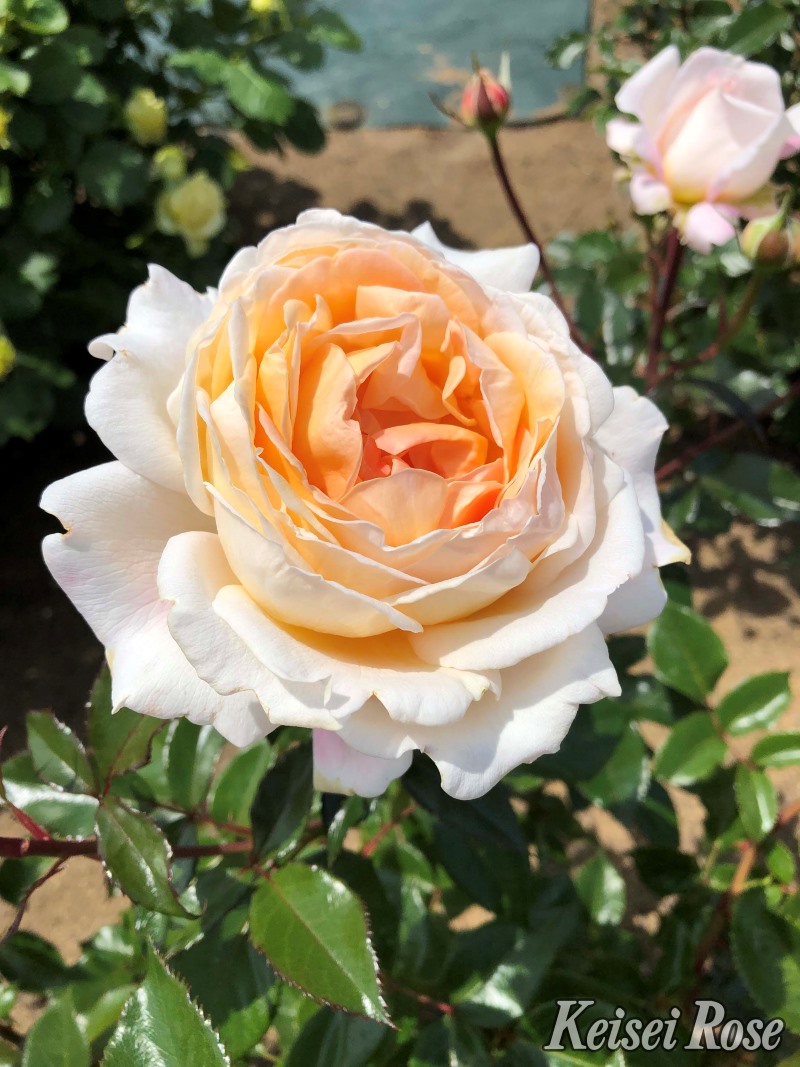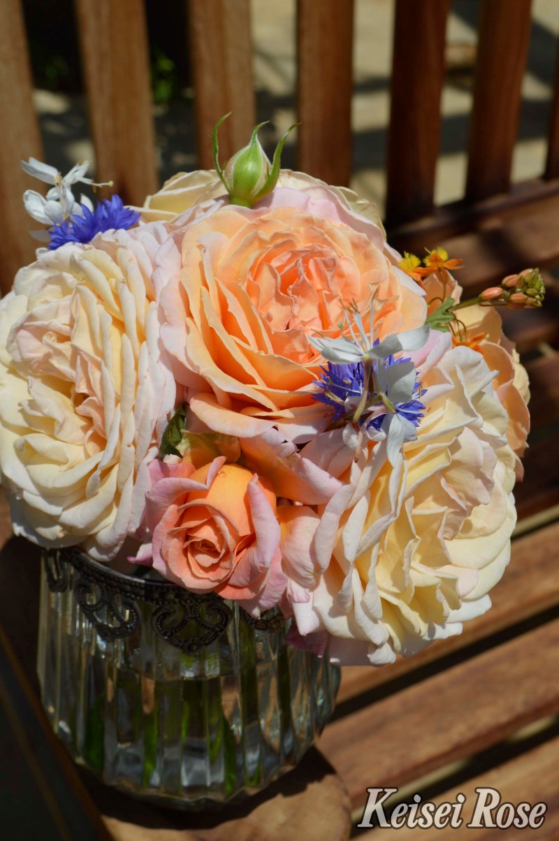 アプリコットピンクの微妙な色あいで、芳醇なフルーツの香りの中にフローラルなど様々な要素を含む素晴らしい香りのバラです。