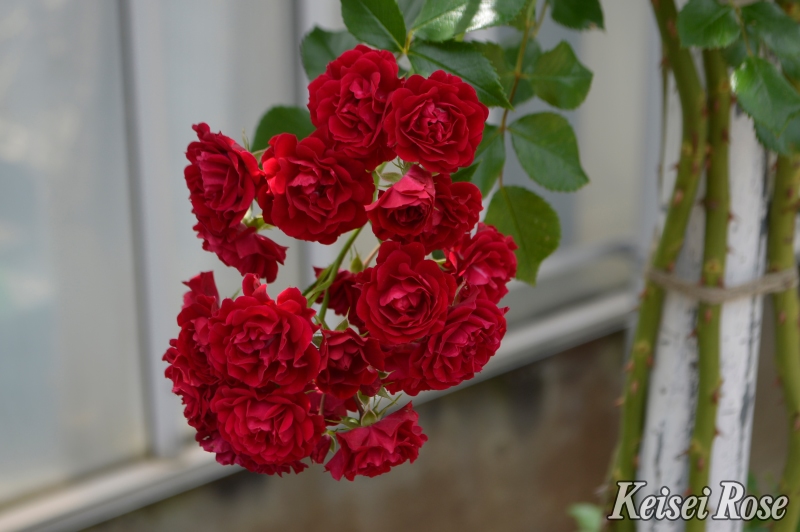 しなやかな枝に小さな花を房状に咲かせる、ランブラー・ローズの「シルエッタシリーズ」の品種です。