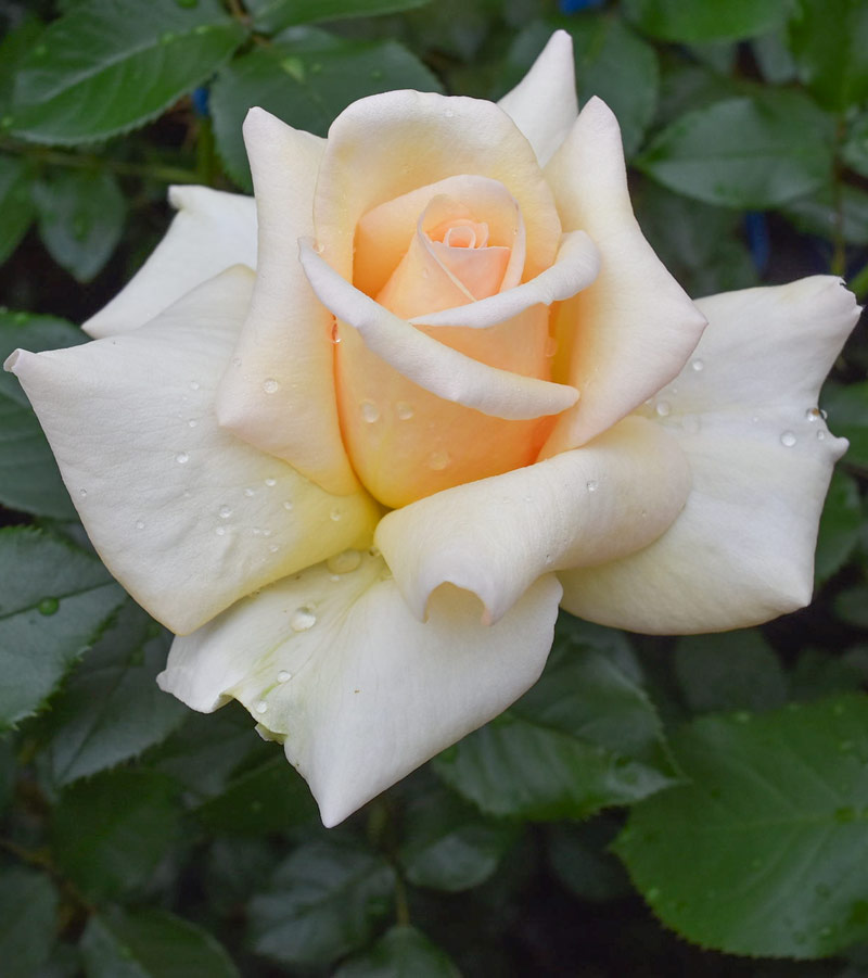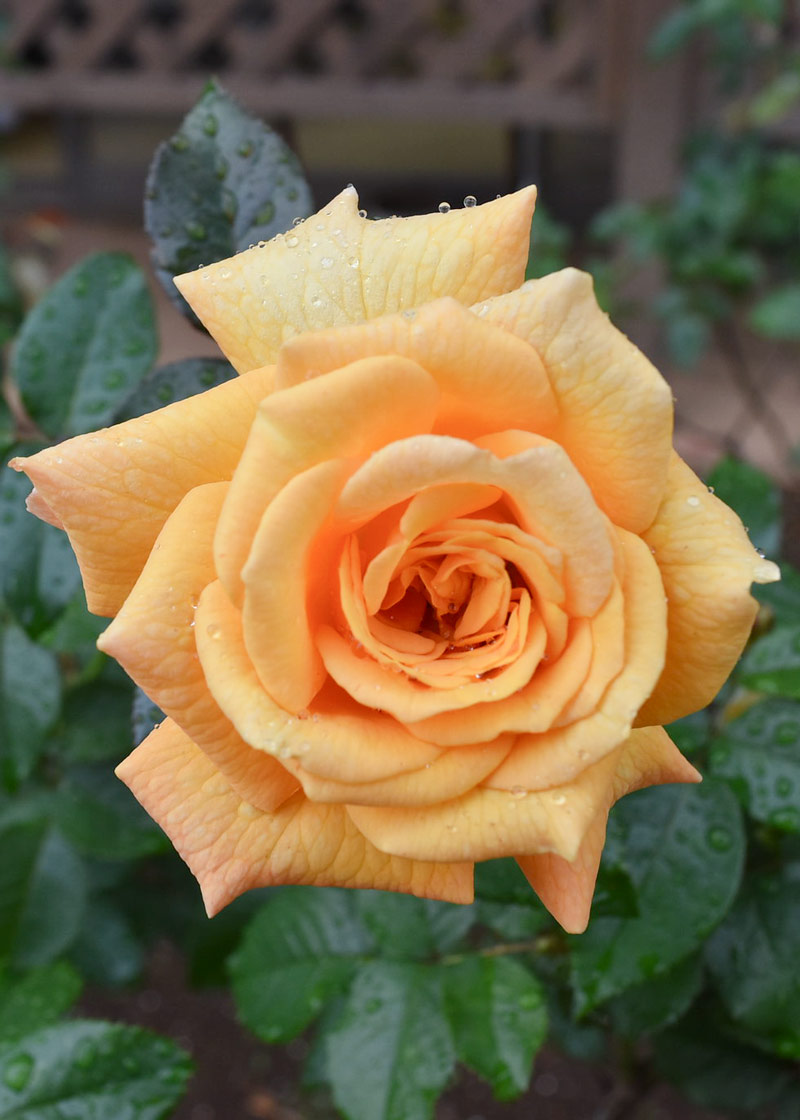 花弁は琥珀色がかった感じの淡い黄色ですが、中心がアプリコット色になり