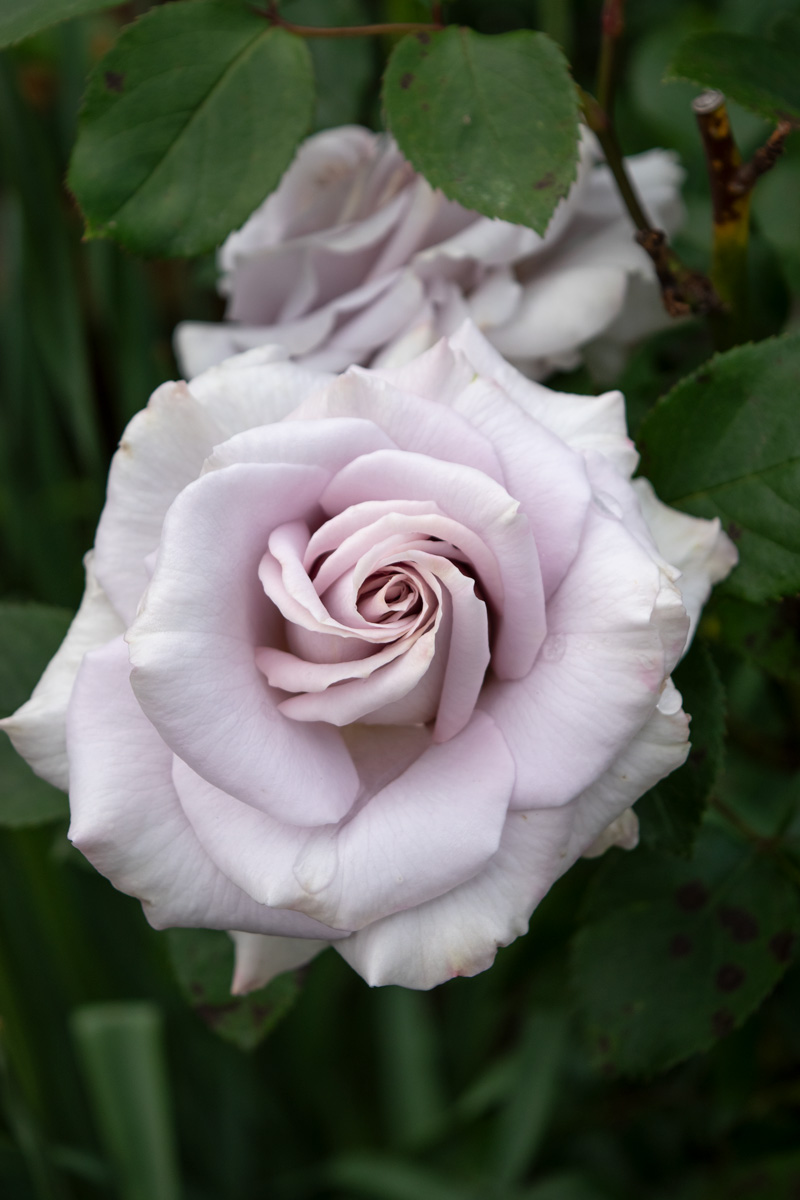とても薄い、色の抜けたようなグレイッシュなラベンダーモーブカラー。バラに硬質で冷たい金属の名前がつく意外性と、説得力のあるそのクールな色合いに引き付けられます。とても強いブルー系の香りも魅力的。強健種です。