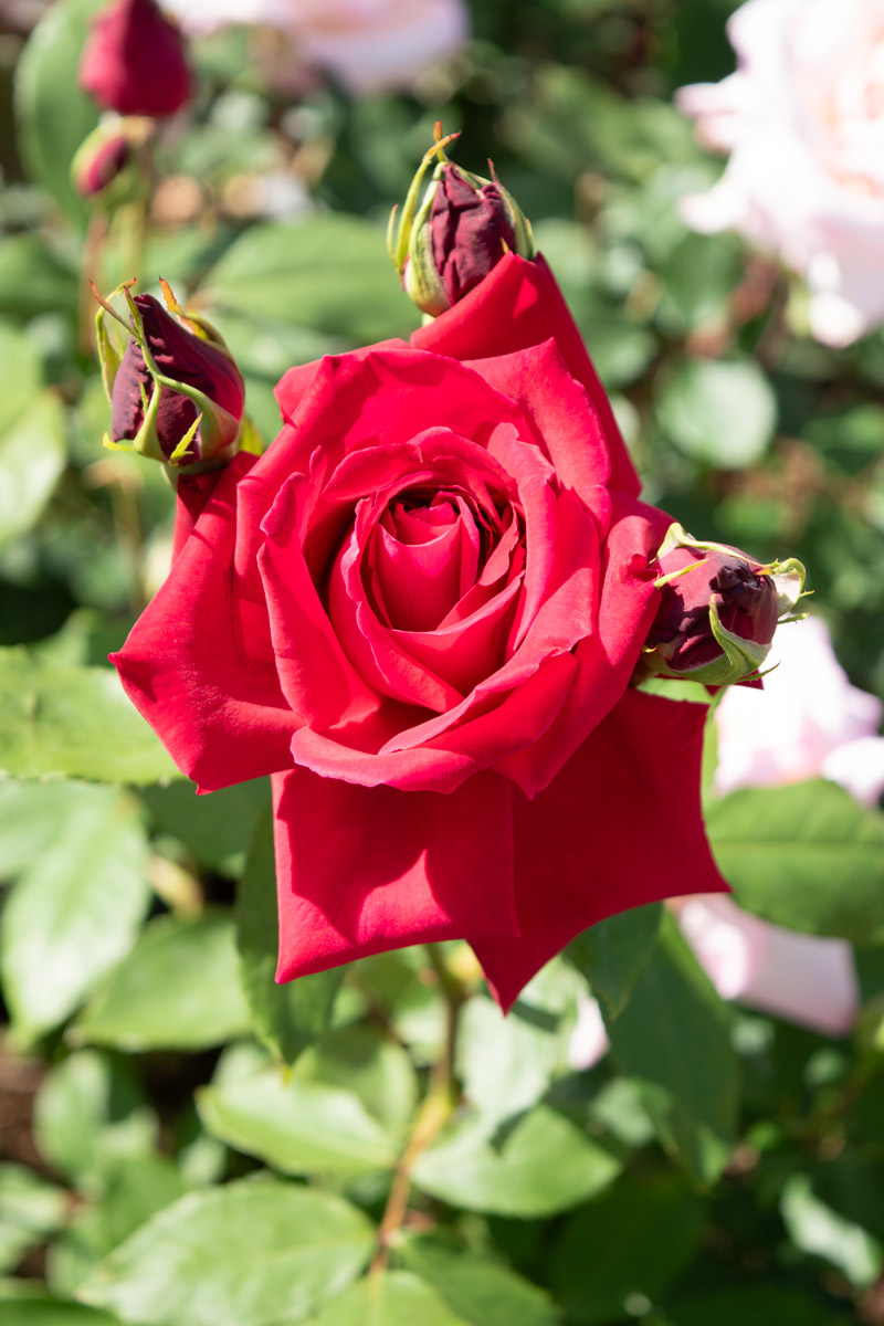 「クリムソングローリー」と「ポインセチア」の交配によって誕生しました。親品種の欠点を補い長所を受け継いでいるので、樹形も花形もよく整って美しいです。