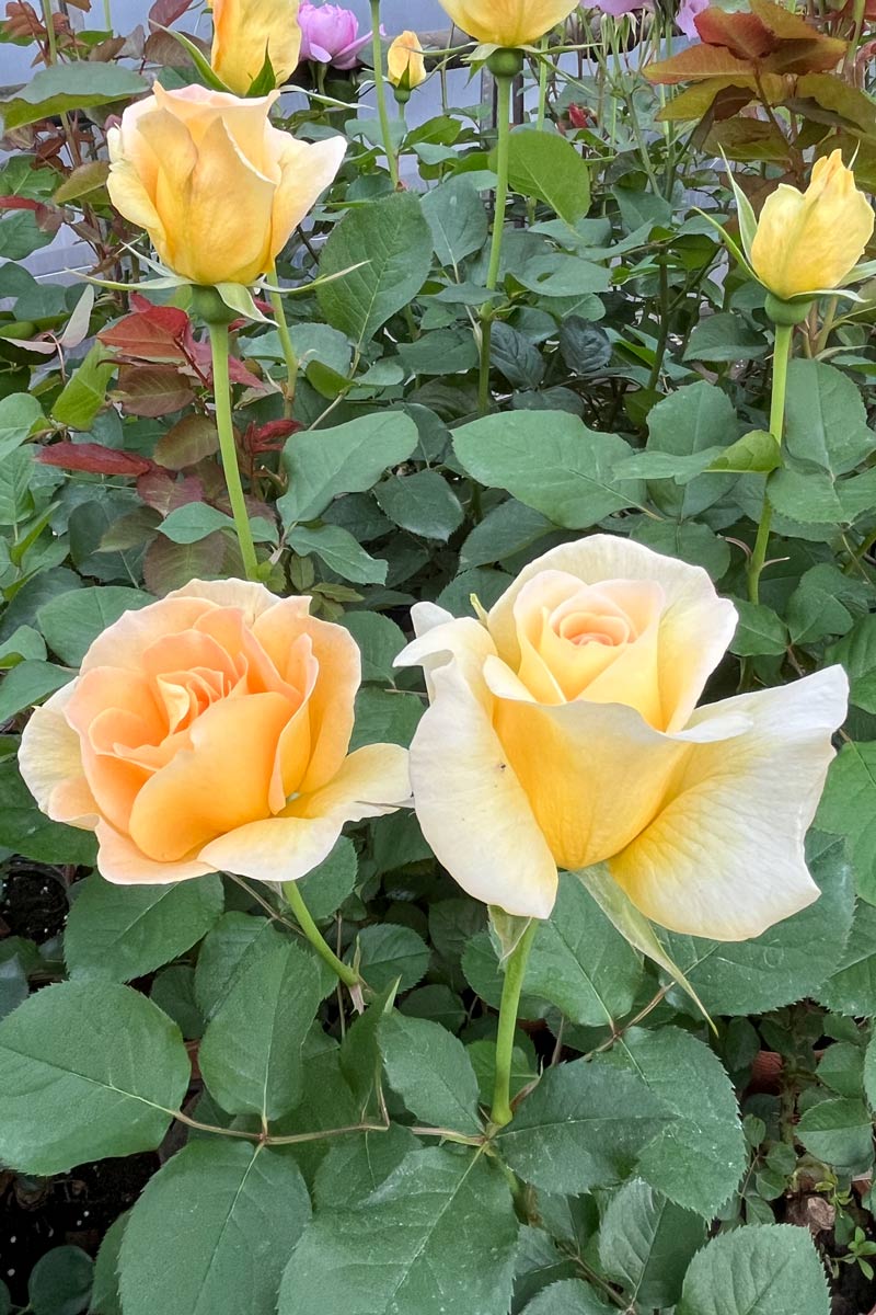 淡いアプリコットイエローから琥珀のように、優しく透き通るような花色です。弁質は厚くしっかりしていて、花型が素晴らしく、フロリバンダローズの中では中大輪で、花付きも良いバラです。名前のとおり、はちみつのような甘いティー香がほんのりします。やや寒さに弱いですが、暑さには強い品種です。