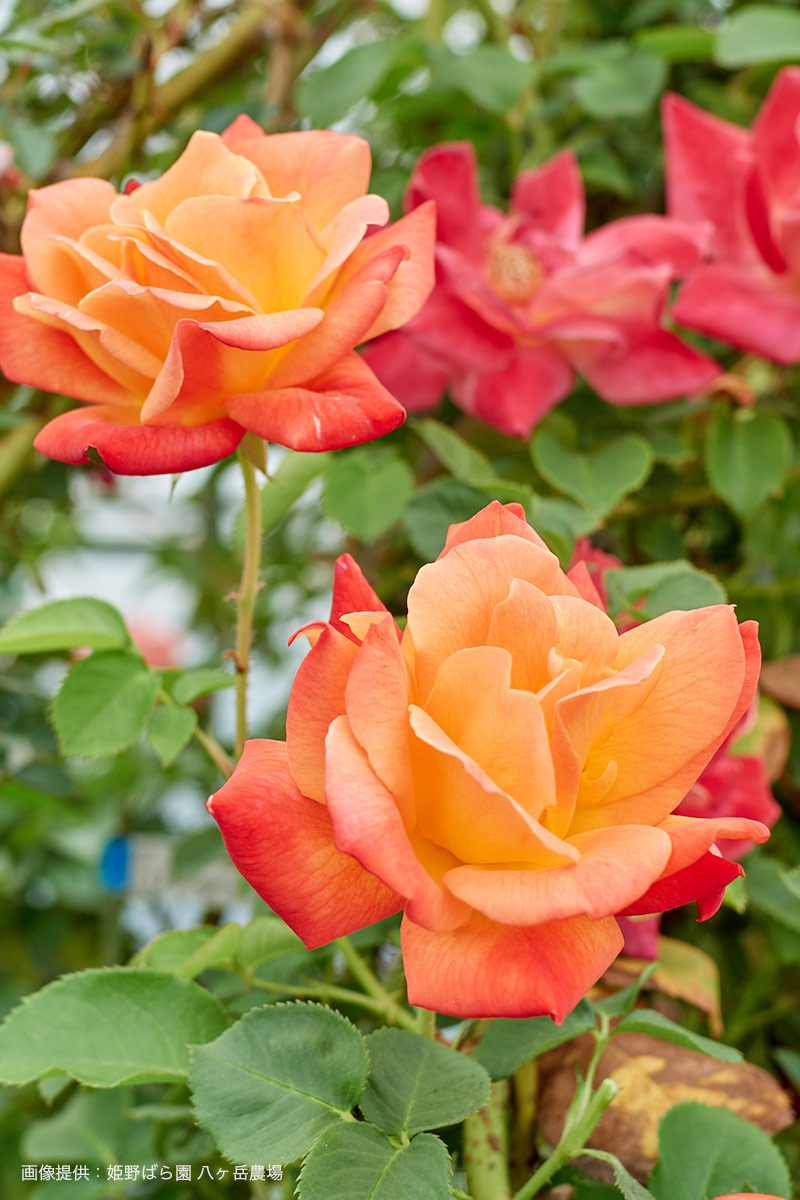 赤・ピンク、中心にいくにつれてオレンジや黄色味が強くなり、そのカラフルな色合いはお庭を華やかに演出してくれます。