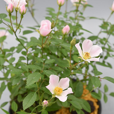 世界でもっとも広く栽培されている国産ミニのつるバラとして代表的な品種です。花つきがよく強健です。